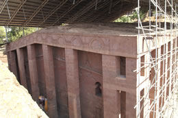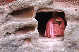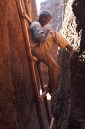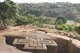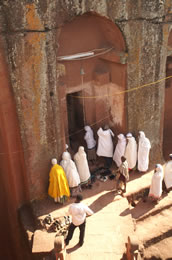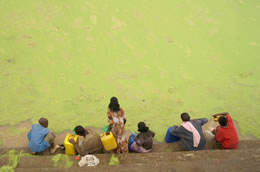 Wasserholen im algenbedeckten Bad der Queen of Sheba in Axum |