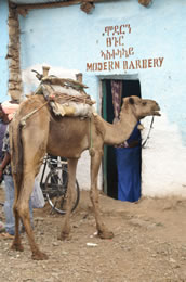 Um 7 Uhr ist Abfahrt nach Addis Abeba. Nach ein paar Kilometern: Hipp, hipp, hurra! Eine neue Strasse. Unsere Gehirnzellen können sich die nächsten 120km wieder richtig anordnen. Dann jedoch ist wieder Schluss mit der Herrlichkeit und der Schüttelbecher ist wieder angesagt. Wir bewältigen mal wieder eine Passhöhe von 3.200m hoch und befinden uns danach auf einer mehr als 200 km langen Hochebene (ca.2.500 - 2.800m) wieder. Kurz vor Addis geht es wieder auf etwa 2.200m runter. Wir erkundigen uns noch bei einer Werkstatt in Kotebe, einem Vorort von Addis, ob und wann sie den Service am Landcruiser vornehmen können. Am Montag kann Werner ihn vorbeibringen. Wir beziehen Zimmer im Hotel Buffet de la Gare, mitten im Stadtzentrum.